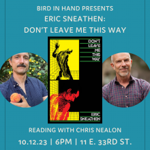 Come on over to Bird in Hand for an evening with Eric Sneathen in celebration of his latest project, Don’t Leave Me This Way! What might look on the surface like a poetry collection unfolds into a historiographical project around the AIDS epidemic. It blends archival research with sexual...