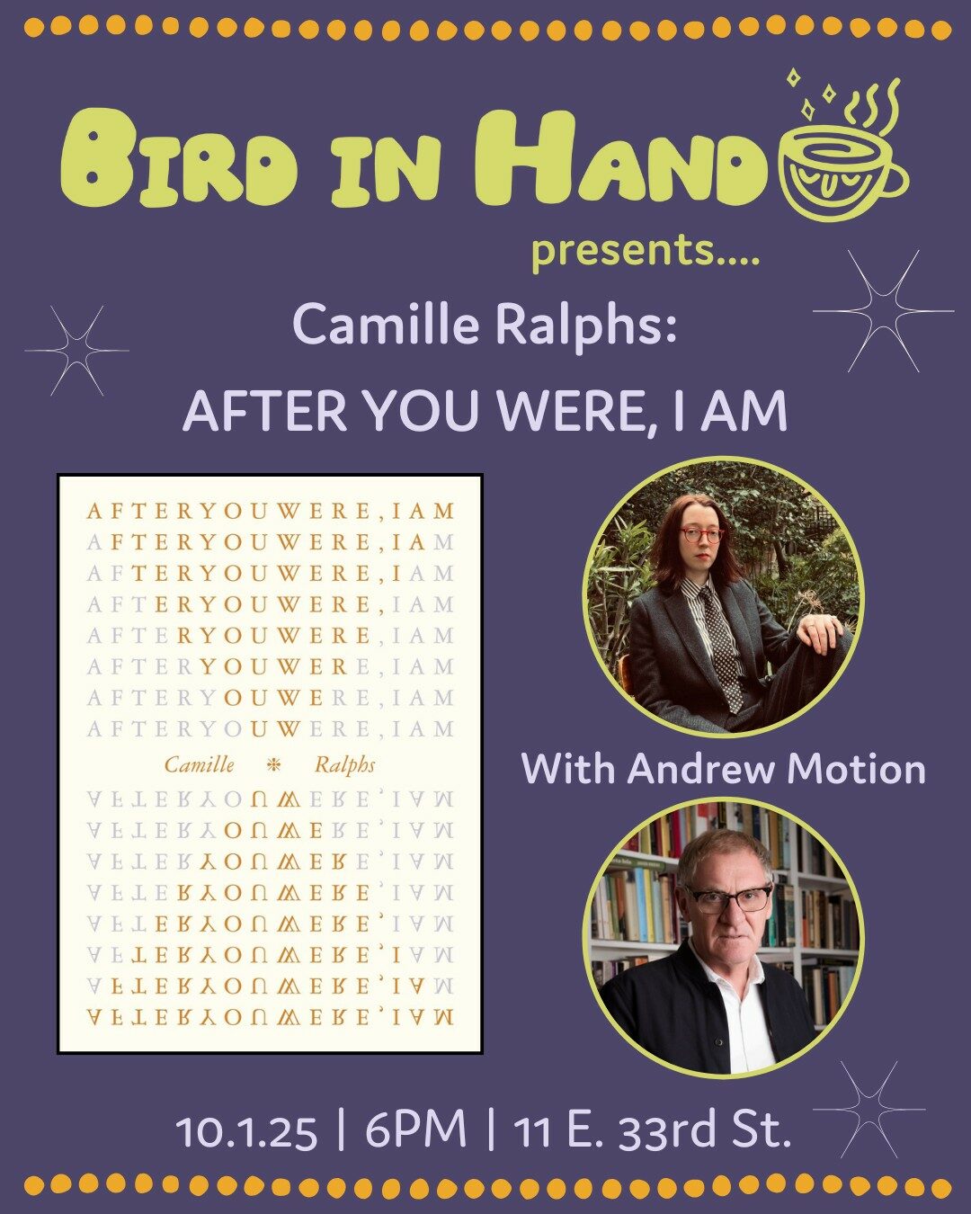 Camille Ralphs, editor at the Times Literary Supplement, celebrates the US publication of her debut poetry collection, After You Were, I Am! She'll offer a reading and conversation with Andrew Motion, former UK Poet Laureate and current Homewood Professor of the Arts at Johns Hopkins University. The book's three...
