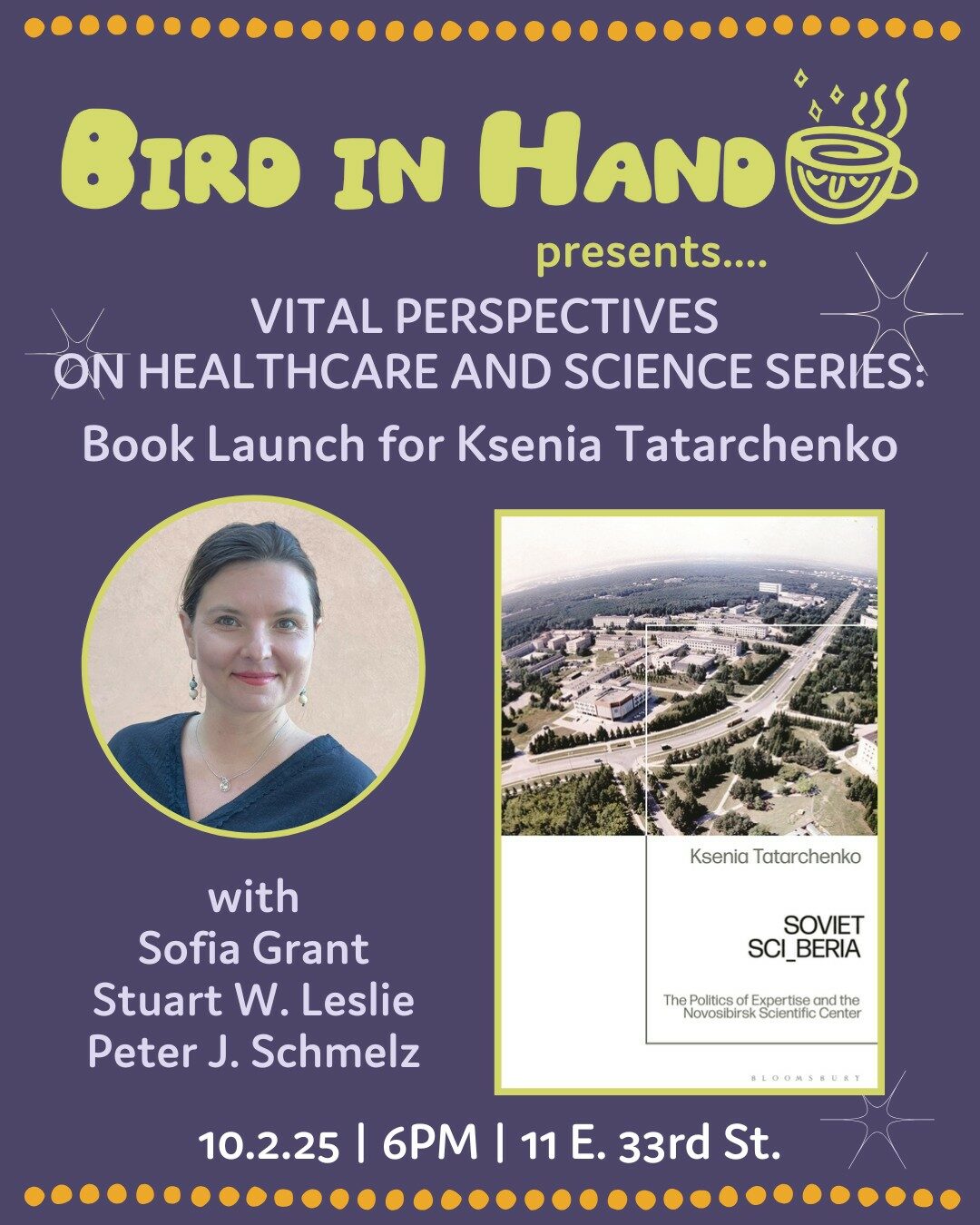 The Vital Perspectives on Healthcare and Science series engages with some of the most pressing public health issues of our time, in a regular public forum catalyzed by a book. For the October event, we are delighted to welcome Dr. Ksenia Tatarchenko to share her new book Soviet SCI_BERIA:...