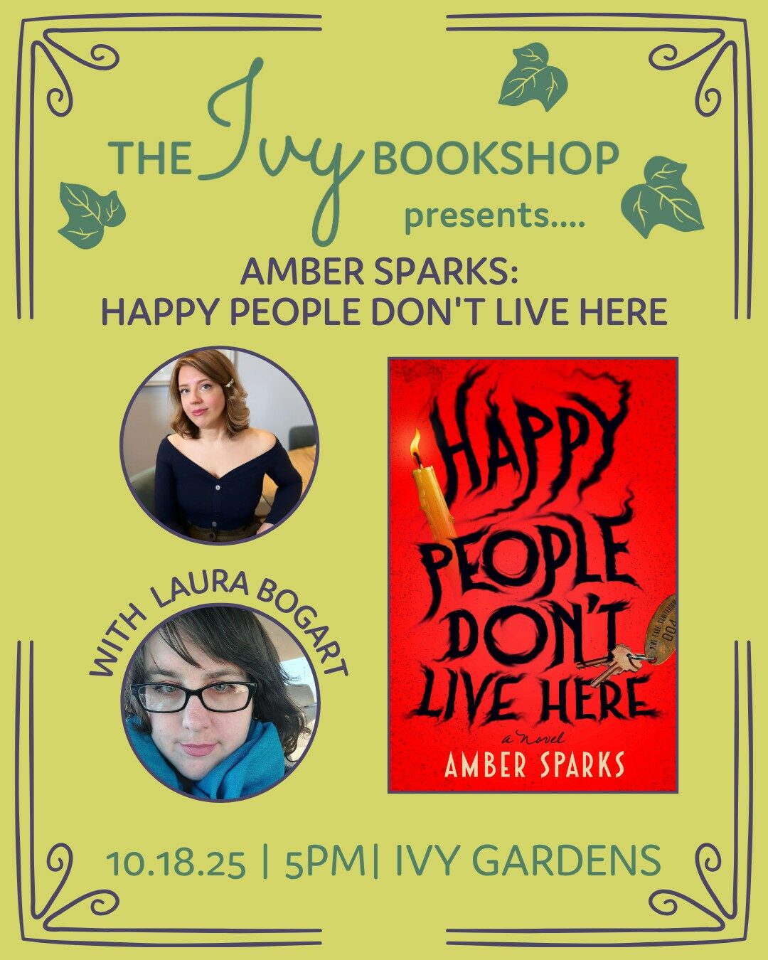 Join us in a secret location of the gardens behind the Ivy bookshop to hear from Amber Sparks, author of HAPPY PEOPLE DON’T LIVE HERE, as she discusses this story of long-buried secrets, family–chosen or otherwise–and the sometimes dangerous myths we make to keep ours together.
