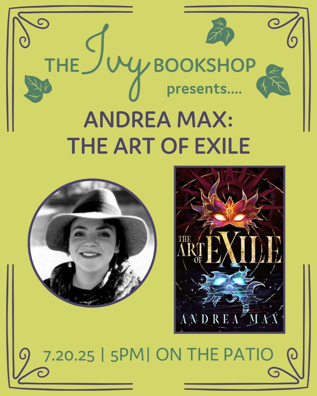 The author joins us on the Ivy patio for a Sunday evening of conversation and book signing! We hope you will join us.