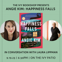 We are so honored to present an evening with Angie Kim, where Laura Lippman will join her in celebration of her new novel, HAPPINESS FALLS!