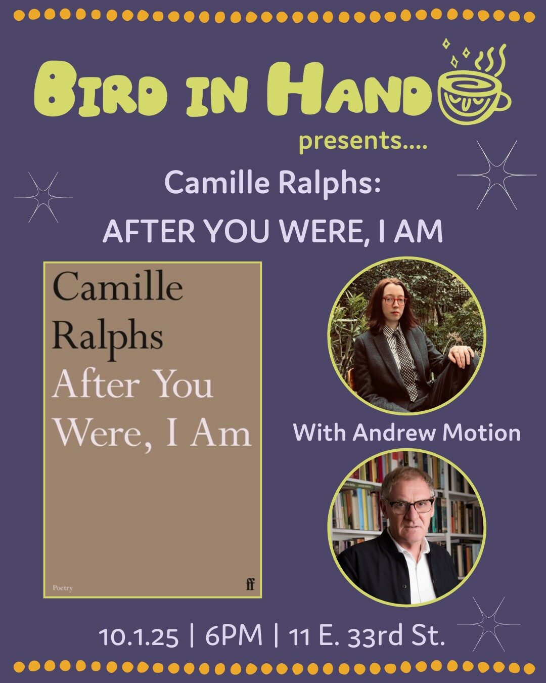 Camille Ralphs, editor at the Times Literary Supplement, celebrates the US publication of her debut poetry collection, After You Were, I Am! She’ll offer a reading and conversation with Andrew Motion, former UK Poet Laureate and current Homewood Professor of the Arts at Johns Hopkins University.