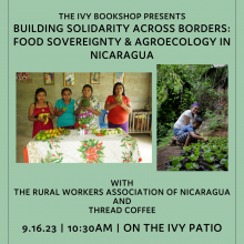 Please join us for a conversation about food sovereignty and agroecology in Nicaragua over a morning cup of coffee at The Ivy Bookshop with two representatives from the Rural Workers Association (Asociación de Trabajadores del Campo, ATC) of Nicaragua and local community members who have recently visited Nicaragua on solidarity delegations.