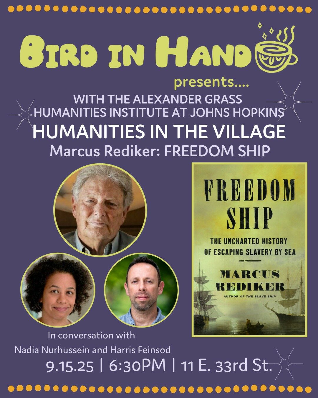 Marcus Rediker (author of Freedom Ship: The Uncharted History of Escaping Slavery at Sea) in conversation with Nadia Nurhussein and Harris Feinsod