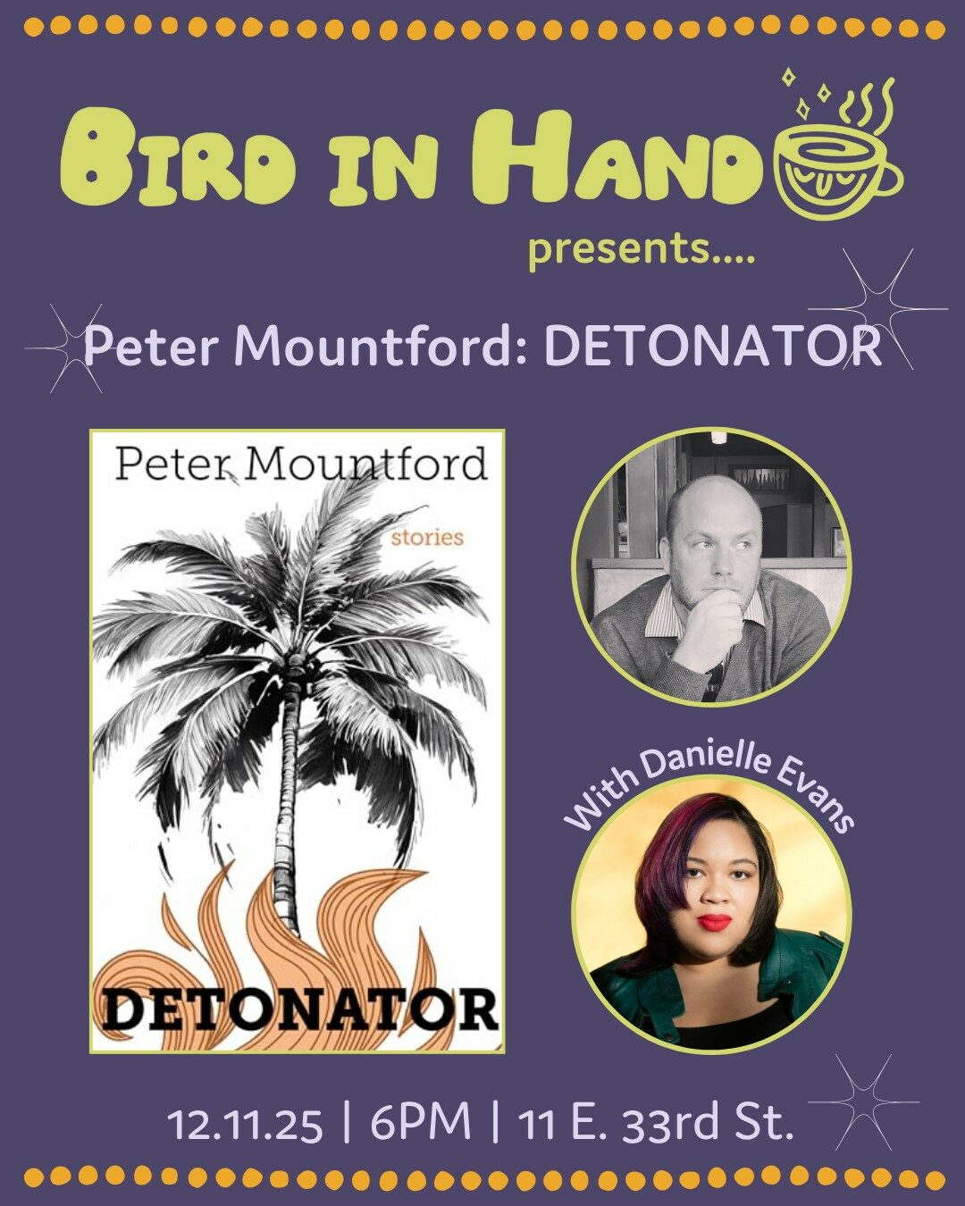 Peter Mountford visits all the way from Seattle to discuss his rich, captivating–even addictive–new short story collection, Detonator, in conversation with Danielle Evans! The characters in Mountford’s Detonator are struggling to do better, to save their souls. These stories are deeply preoccupied with the consequences of human decisions—these often funny and sometimes painful stories highlight flawed but fascinating characters making flawed choices in the hopes of achieving grace, or at least growth.