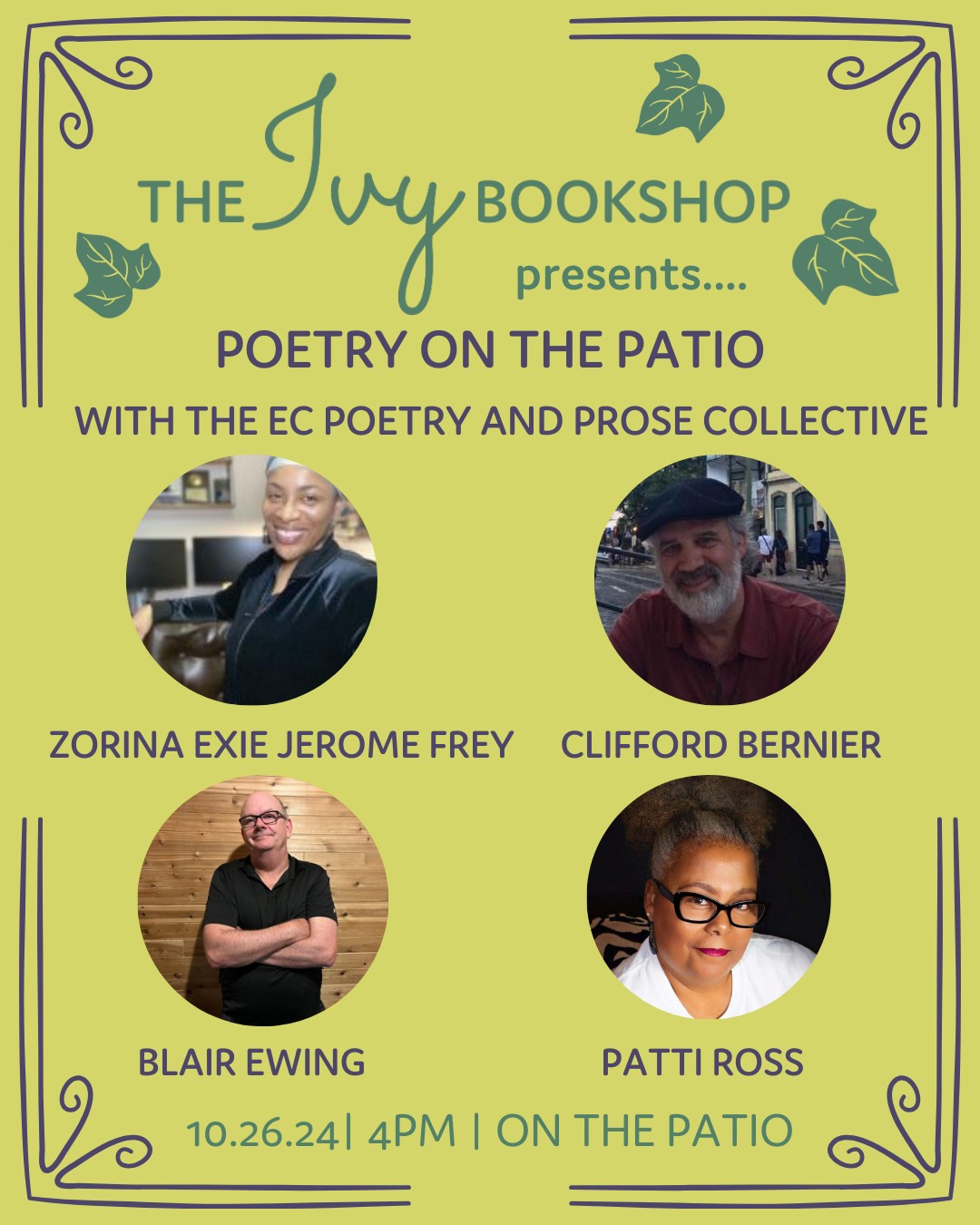 Join the EC Poetry and Prose Collective as they host a reading as a part of Free Fall Baltimore, with Zorina Exie Frey, Clifford Bernier, Blair Ewing, and Patti Ross!