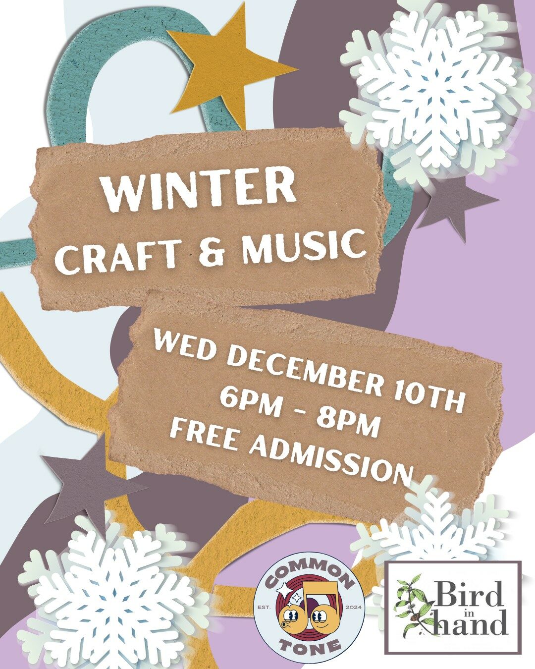 Come in from the cold and get cozy with Common Tone during the hectic holiday season. Enjoy a night of crafting and live music with the family, and maybe try some of Bird in Hand’s seasonal specialties.