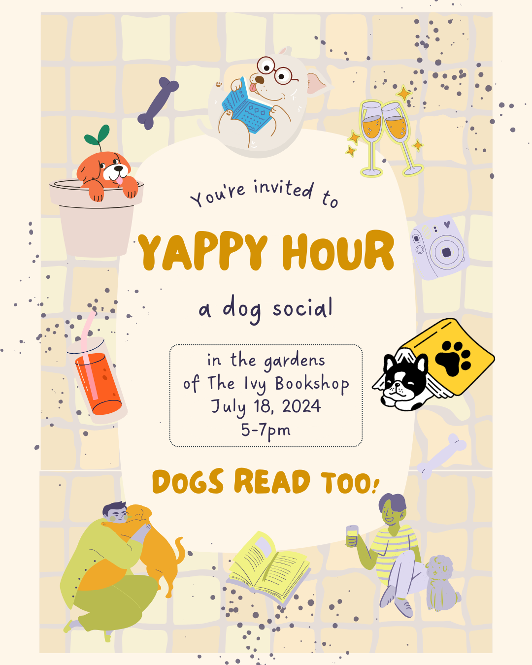 You asked, we answered! Presenting The Ivy’s first ever Yappy Hour, an outdoor happy hour with refreshments and books for humans and pups alike!