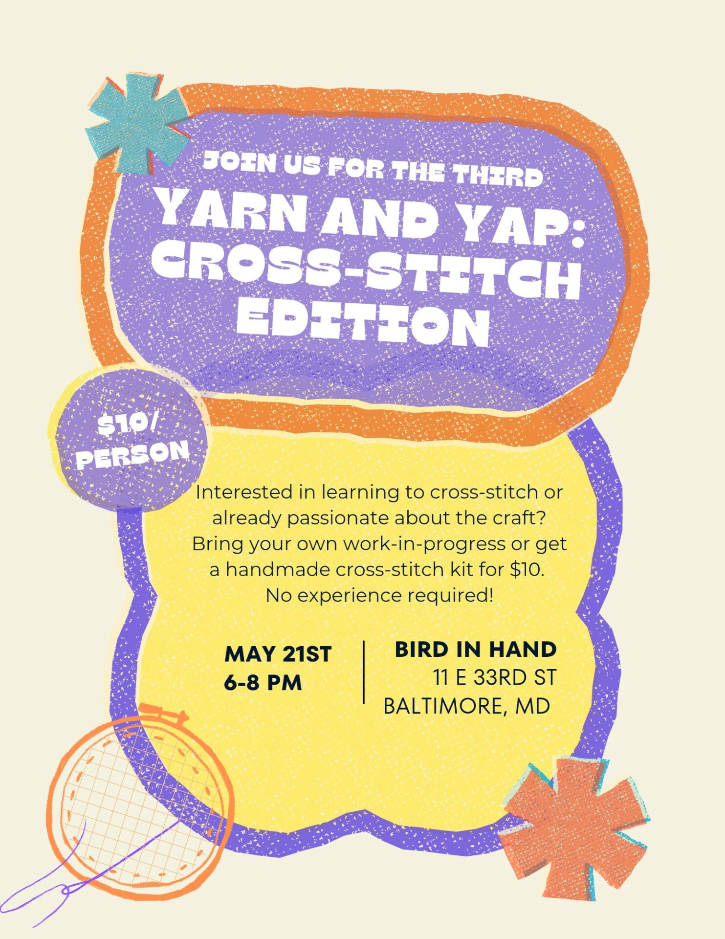 Yarn and Yap at Bird in Hand: Cross-Stitch Edition