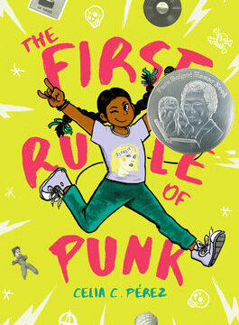 The First Rule of Punk is a wry and heartfelt exploration of friendship, finding your place, and learning to rock out like no one’s watching. There are no shortcuts to surviving your first day at a new school–you can’t fix it with duct tape like you would your Chuck Taylors. On Day One, twelve-year-old Malú (MarÃa Luisa, if you want to annoy her) inadvertently upsets Posada Middle School’s queen bee, violates the school’s dress code with her punk rock look, and disappoints her college-professor mom in the process. Her dad, who now lives a thousand miles away, says things will get better as long as she remembers the first rule of punk: be yourself. The real Malú loves rock music, skateboarding, zines, and Soyrizo (hold the cilantro, please). And when she assembles a group of like-minded misfits at school and starts a band, Malú finally begins to feel at home. She’ll do anything to preserve this, which includes standing up to an anti-punk school administration to fight for her right to express herself! Black and white illustrations and collage art by award-winning author Celia C. Pérez are featured throughout. “Malú rocks!”–Victoria Jamieson, author and illustrator of the New York Times bestselling and Newbery Honor-winning Roller Girl